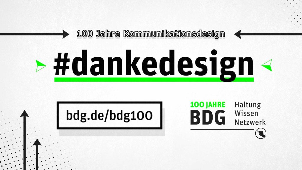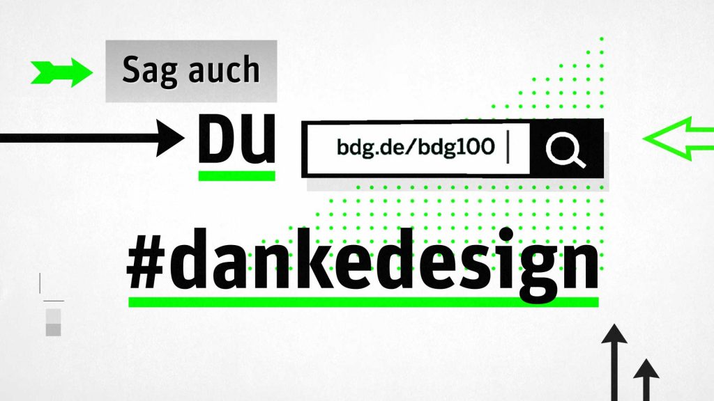2019 feierte der Berufsverband der deutschen Kommunikationsdesigner (BDG) 100 jähriges Jubiläum. Ein Grund für den Verband einmal „Danke“ zu sagen. Zu diesem Zweck wurde die Aktion „Danke Design“ ins Leben gerufen. Ein Aktion in der sich die Mitglieder des BDGs beim „Design“ bedanken. Wir unterstützten als Mitglieder unseren Verband ehrenamtlich und halfen bei der Erarbeitung der Inhalte, entwickelten das Storyboards und übernahmen die Videoproduktion.
