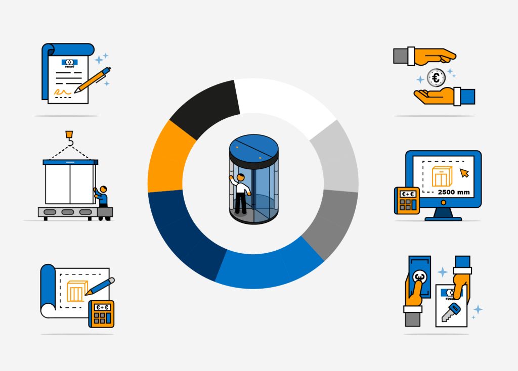 Um das Erscheinungsbild der Record Türautomation GmbH visuell zu erweitern, entwickelten wir ein Piktogramm- bzw. Illustrations-System nach CI-Vorgaben des Unternehmens. Die so entstanden Piktogramme werden flexibel in der Unternehmenskommunikation für Print und Web eingesetzt.