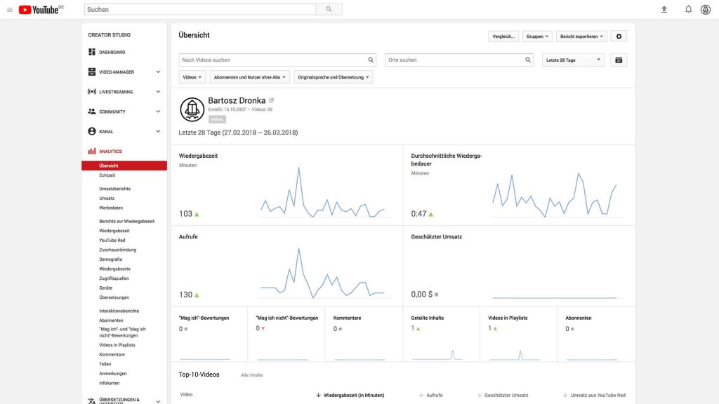 YouTube stellt seinen Nutzern ein eigenes Tool zur Verfügung, mit dem der Kanalbetreiber sein Video analysieren kann. Dieses Tool gibt beispielsweise Aufschluss über die tatsächlichen Views, die Wiedergabezeit, die Anzahl der Abonnenten oder das Herkunftsland der Besucher. Diese Informationen sind unheimlich wertvoll, weshalb du YouTube Analytics unbedingt nutzen solltest.